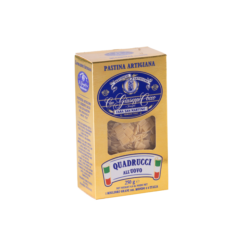 Durum wheat semolina and fresh category A eggs from free-range hens 33.5%. May contain traces of soy and mustard.