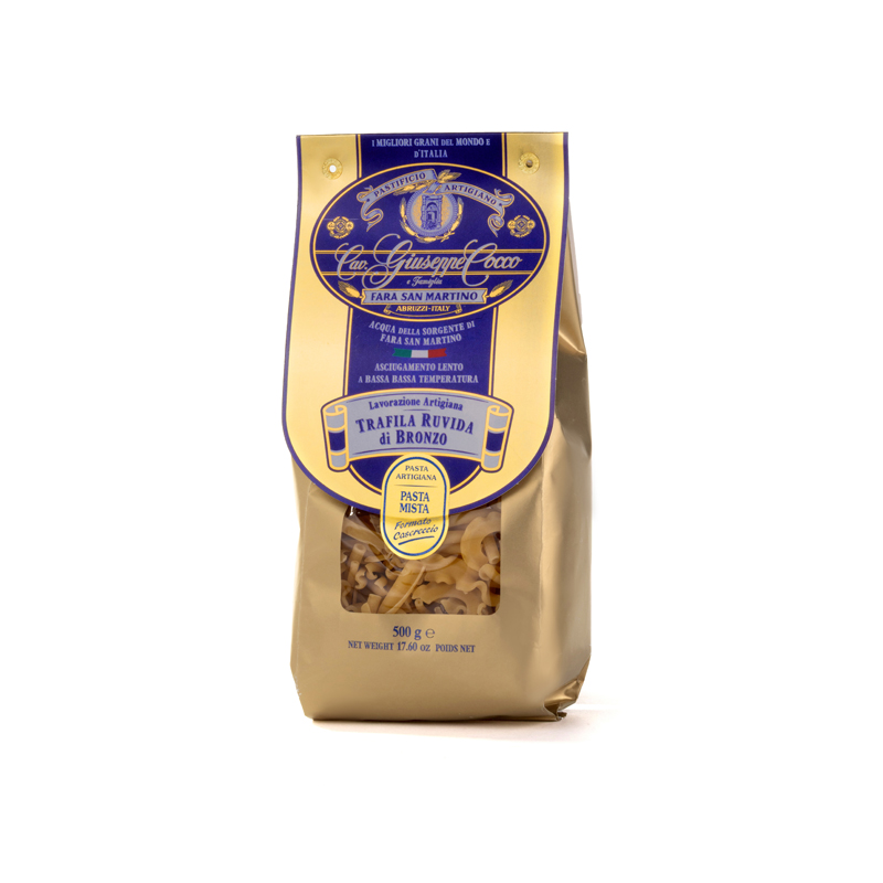 I formati Caserecci sono forme di pasta realizzate con metodi artigianali secondo le usanze dei mastri pastai di Fara San Martino. La pregiata semola di grano duro e l'acqua fredda di sorgente si legano nella gramola, che gira lenta, per creare un impasto sodo ed omogeneo. Poi la vite e la madrevite spingono l'impasto contro la trafila ruvida di bronzo per realizzare le più diverse forme di pasta, oppure per creare la sfoglia dei Farfalloni, Sagnarelli ed altri formati esclusivi da sfoglia.