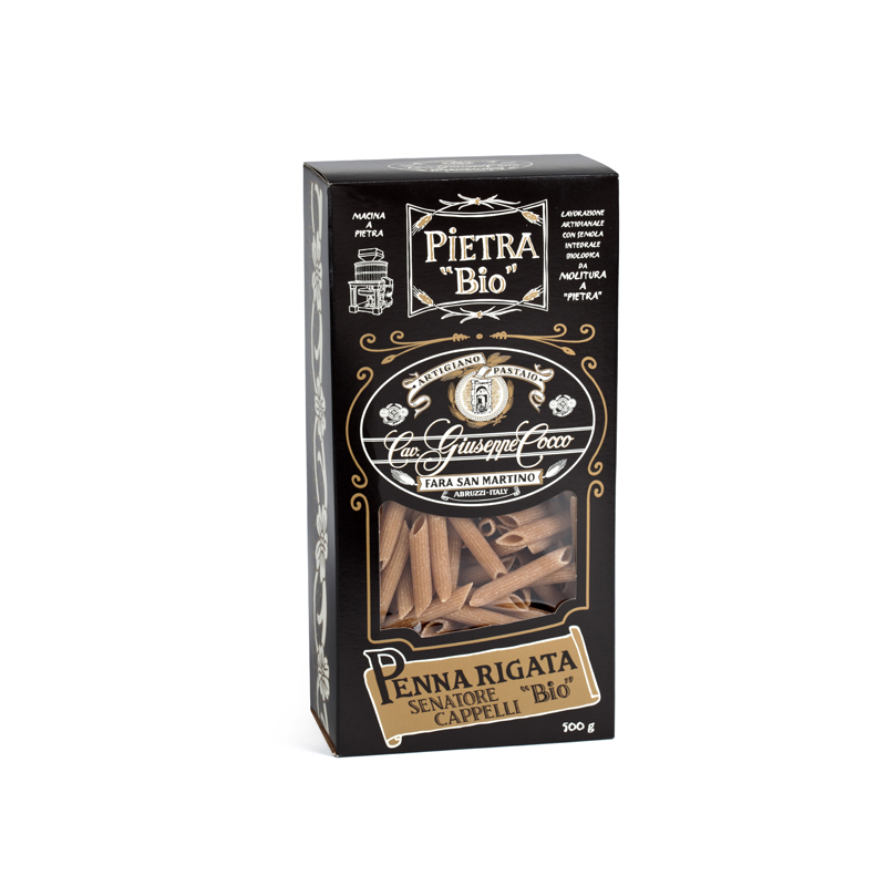 La Sfoglia Senatore Cappelli Bio è prodotta con semola integrale di grano duro della varietà Senatore Cappelli. La semola integrale è ottenuta mediante l’antica tecnica della Molitura a Pietra e contiene sia la crusca che il germe di grano.